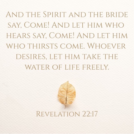 What else can be said? The Lord Jesus has invited you to receive the free gift of His Water of Life...which represents salvation and eternal life. Will you ask Him for it?