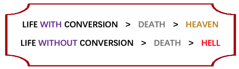 Therefore, CONVERSION is turning away from any attempts to keep any of God’s moral laws and/or commandments, as a way to earn your way to heaven...because it is impossible to do.
