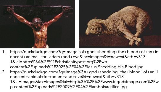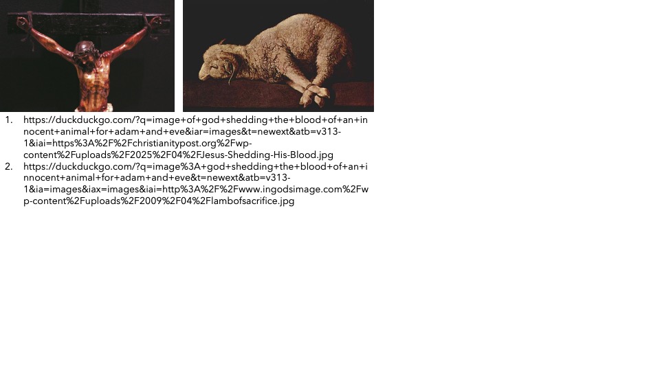 God told them this was insufficient and He Himself killed the first animal (the first death in history), shed its blood, took the skin of the animals, and gave the skin or skins to Adam and Eve to cover their nakedness and shame, caused by their sin of eating the forbidden fruit...specifically a trespass.
