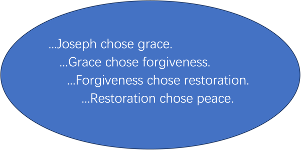 Now it is Joseph’s turn to choose or reject God’s grace. He could either reject God’s grace and take revenge on his brothers and throw them into prison for life or he could accept God’s grace and forgive them and restore them and save their lives from starvation. He chose the way of grace, as you can see from these select verses.