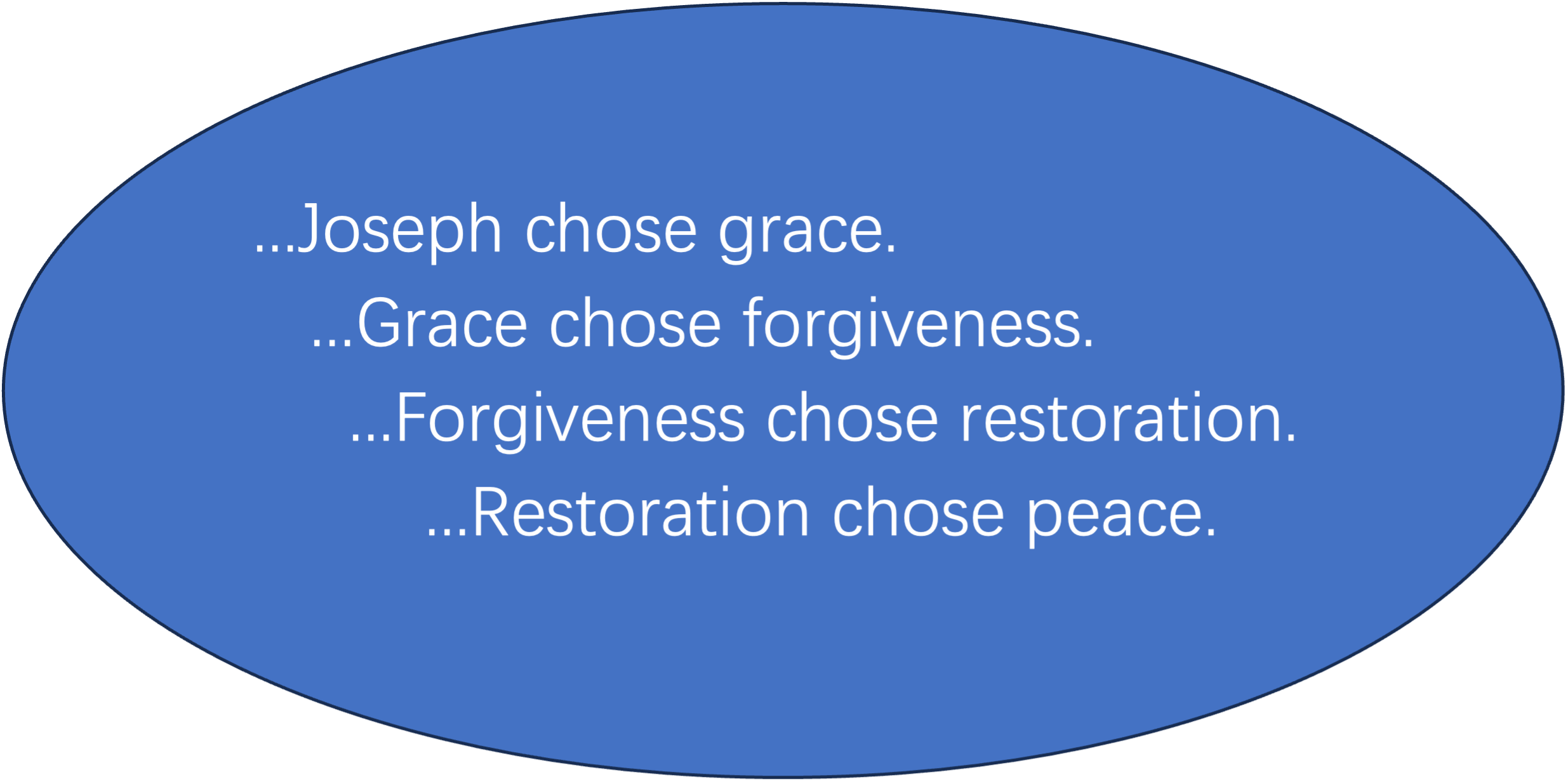 Now it is Joseph’s turn to choose or reject God’s grace. He could either reject God’s grace and take revenge on his brothers and throw them into prison for life or he could accept God’s grace and forgive them and restore them and save their lives from starvation. He chose the way of grace, as you can see from these select verses.